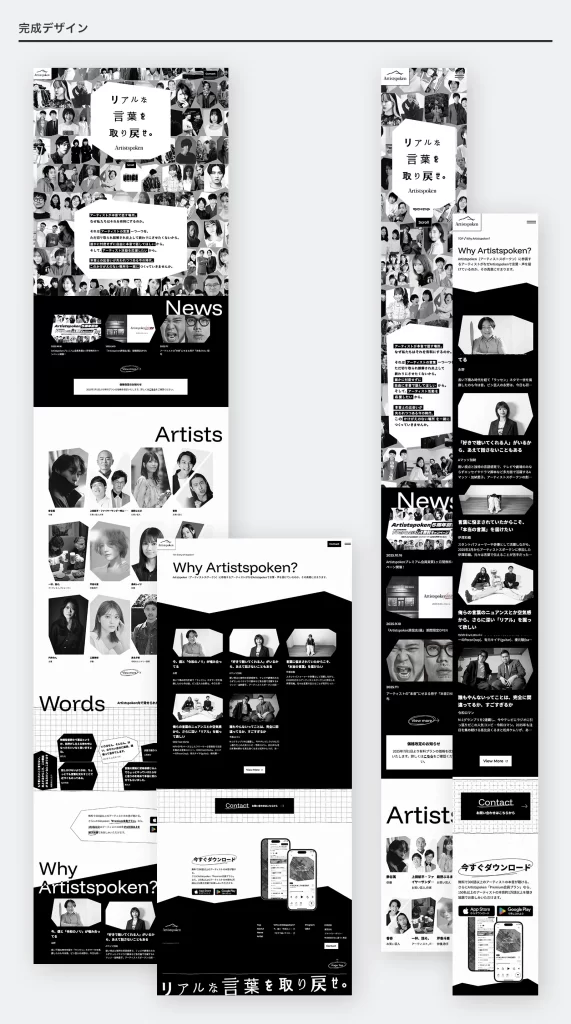 この節目にあたり、サービスとして伝えたいコンセプトをあらためて見つめ直したいというご相談をいただき、トンマナの再設計を含めたフルリニューアルに取り組みました。博報堂様のデザイナーの方々と連携しながらメッセージとテーマの整理を進め、新たなタグライン「リアルな言葉を取り戻せ。」を軸としたコンセプトデザインを策定。2025年7月には、その世界観をアプリとLPの両面に反映したデザイン刷新を担当させていただきました。