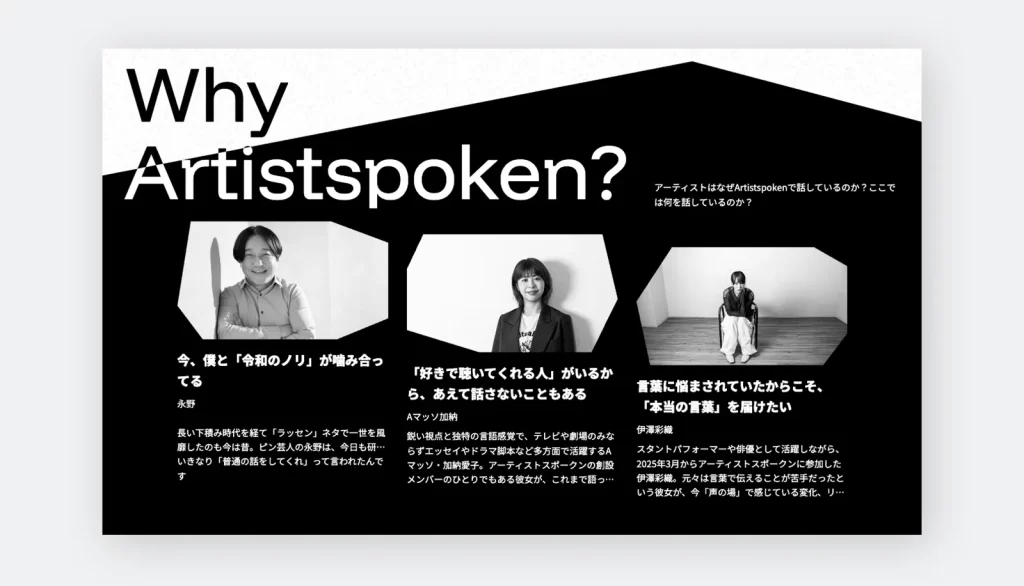 株式会社博報堂 「Artistspoken」ティザーサイト 音声配信アプリ「Artistspoken」