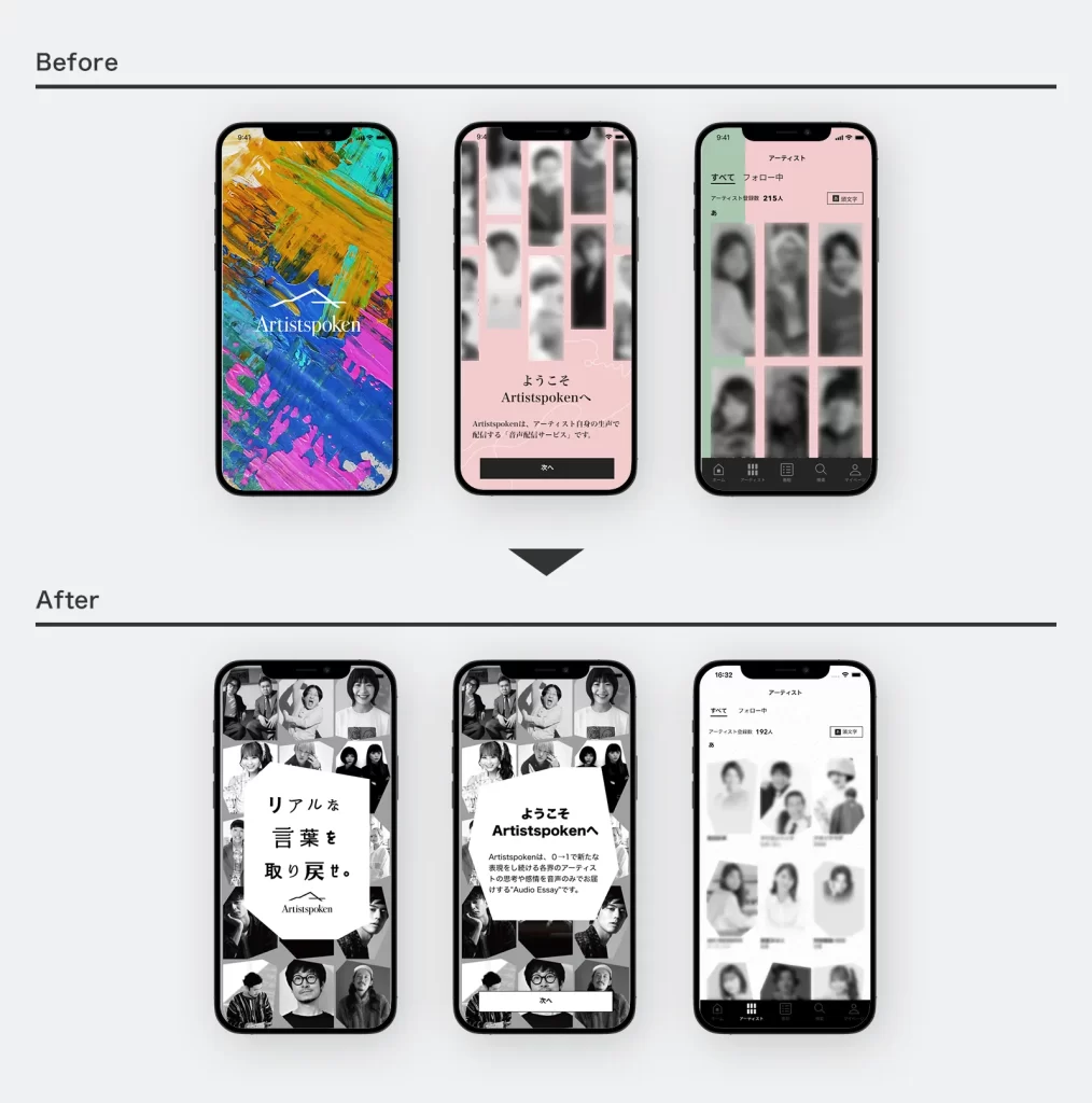 クライアント様のデザイナーの方々と連携しながら伝えたいメッセージとテーマの整理を行い、弊社ではWebサイトとアプリのデザインの刷新を担当させていただきました。
