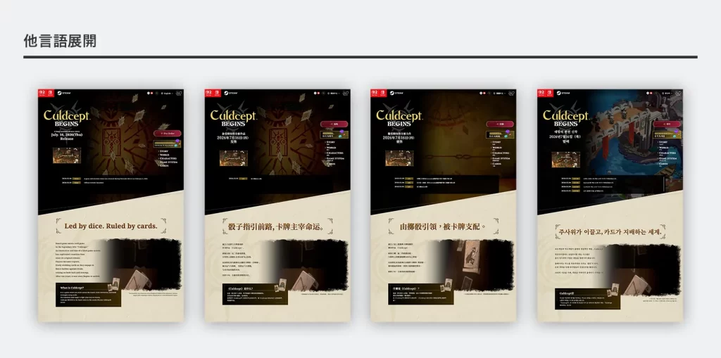 長年のファンにとって待望となる本作の世界観や魅力を余すことなく伝えるため、日本語・英語・韓国語・繁体字・簡体字の5言語に対応した各言語版サイトを制作しています。