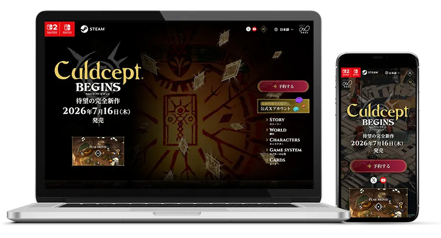Nintendo Switch 2、Nintendo SwitchおよびPC向けソフト「カルドセプト ビギンズ」。シリーズ10年ぶりとなる完全新作タイトルの公式サイト制作をご依頼いただきました。